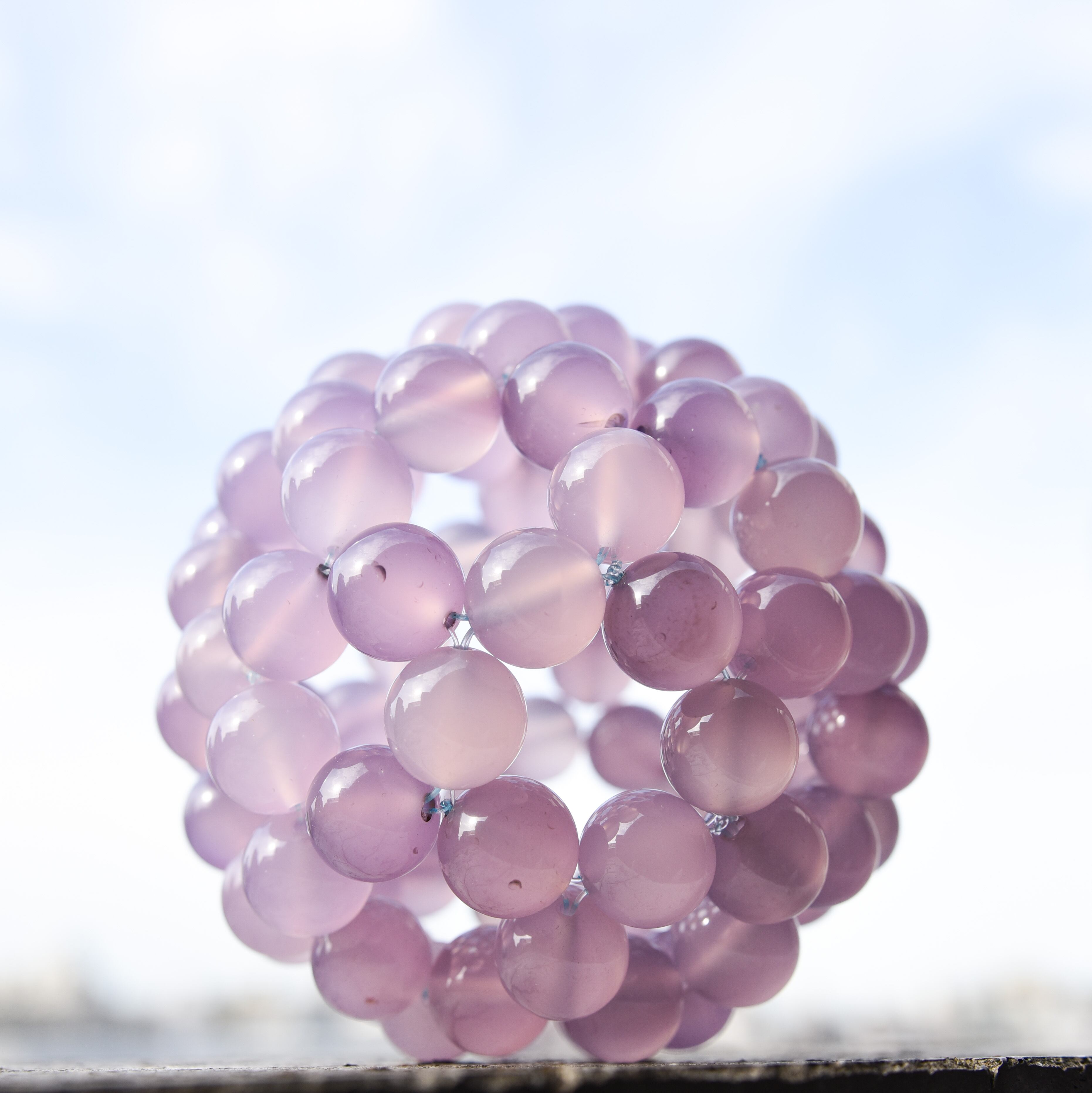キレイ色のパープルのカルセドニーを90個使用したスフィアです。